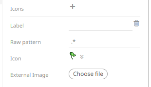 6. The Raw Pattern field lets you specify a text string. When a node in the visualization matches the text string, the corresponding icon is displayed. Leaving the Raw Pattern field empty creates a match on non-empty strings.