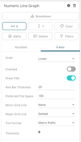 Other visualization-specific properties can be set by clicking on the X-Axis variable drop area and then selecting the X-Axis tab: