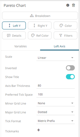Other visualization-specific properties can be set by clicking on the Left Y variable drop area and then selecting the Left Axis tab: