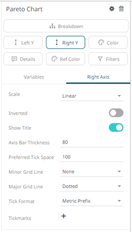 Or also, by clicking on the Right Y variable drop area and then selecting the Right Axis tab: