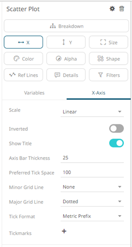 Other visualization-specific properties can be set by clicking on the X-Axis variable drop area and then selecting the X-Axis tab: