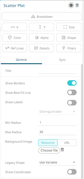 The scatter plot settings pane