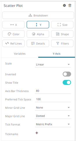 Or also, by clicking on the Y-Axis variable drop area and then selecting the Y-Axis tab:
