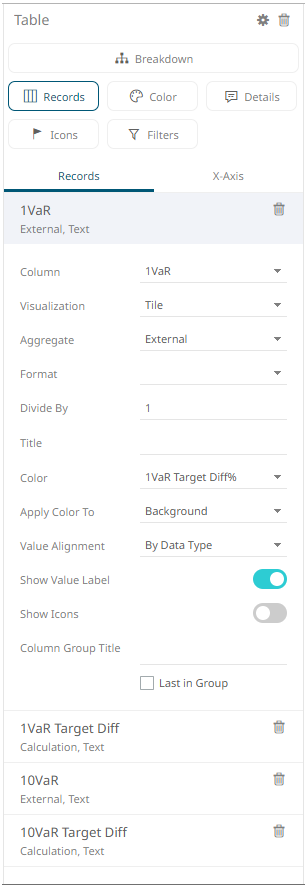 When working with financial risk data, especially Value at Risk (VaR) the data will be by definition non-additive and cannot be calculated internally within Panopticon Visualization Server. As a consequence, we allow aggregates to be retrieved in addition to the base data set. Configuration of the External aggregate can be supplied explicitly by the user or implicitly from the data plug-in.