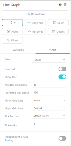 Other visualization-specific properties can be set by clicking on the Y-Axis variable drop area and then selecting the Y-Axis tab: