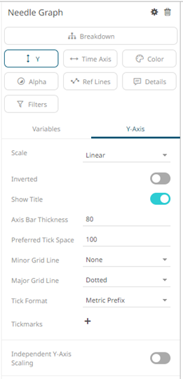 Other visualization-specific properties can be set by clicking on the Y-Axis variable drop area and then selecting the Y-Axis tab: