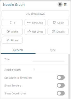 Needle Graphs display time-based transactions or occurrence frequencies, rather than time-based trends. They are simply time-based Bar Graphs where each bar is located at a particular time point on the axis.