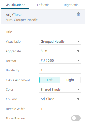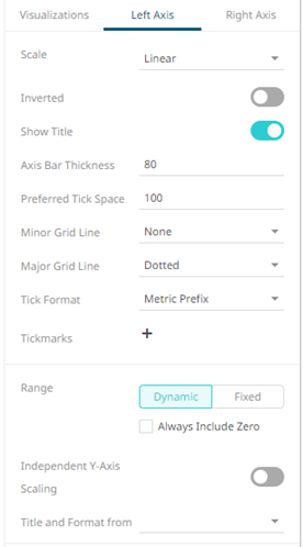 The title and format of the Left and Right Axes based on the selected fields. |