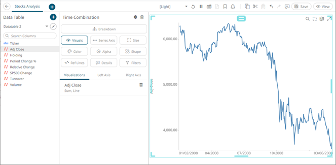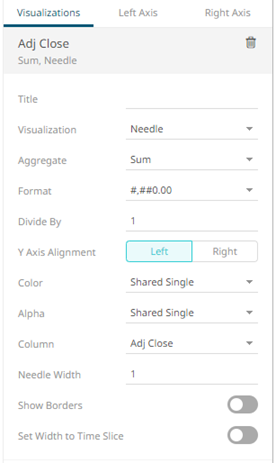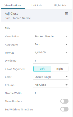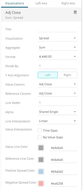6. The time combination visualization includes an expanded axes pane, which includes specification of the properties for both the Left and Right Y axes.