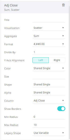If the visualization is incorrect, instead of deleting, you can just select another one in the Visualization drop-down list. The settings pane will be changed to display the corresponding properties of the selected visualization. |