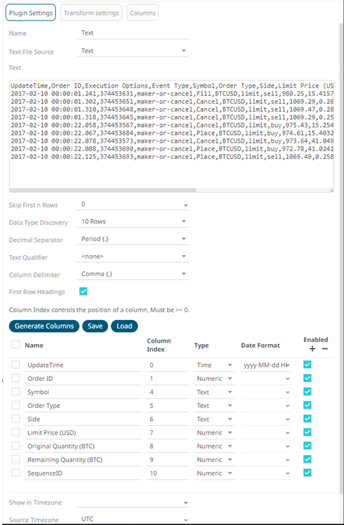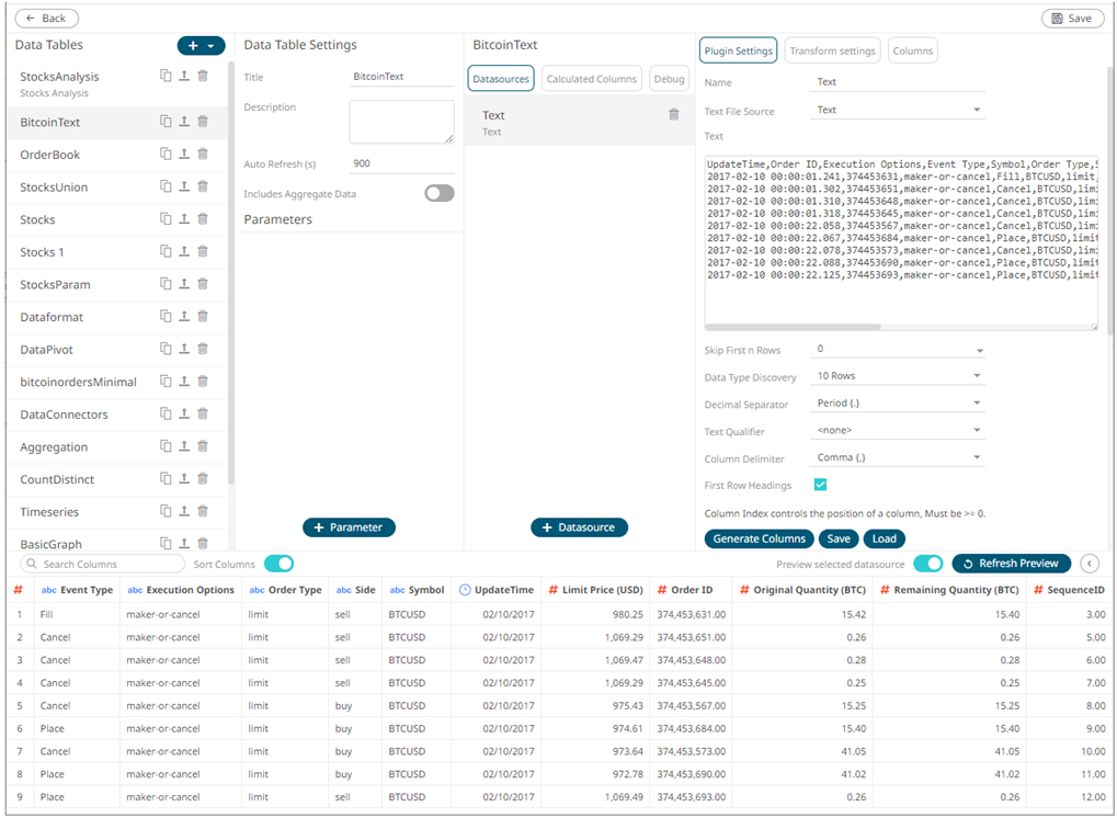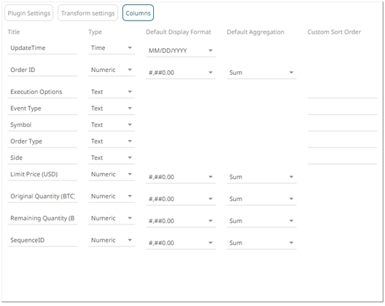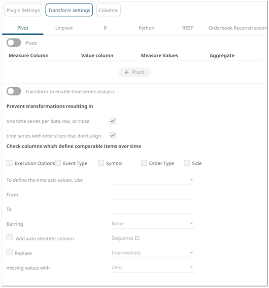 Clicking the Transforms Settings button displays the transform settings of the currently selected data source.
