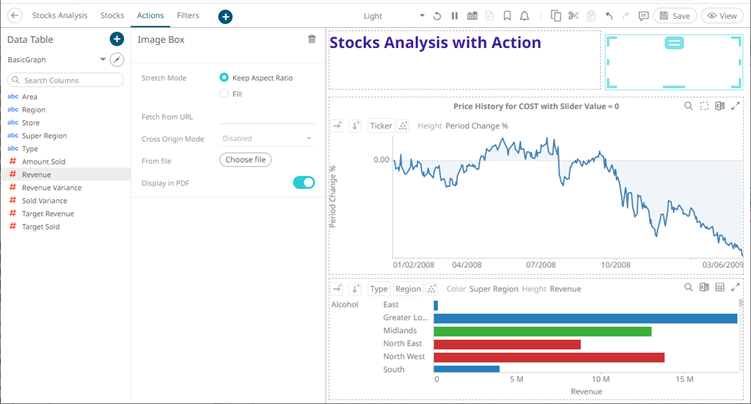 The Image Box pane is displayed, and the Image Box part is added on the dashboard canvas.