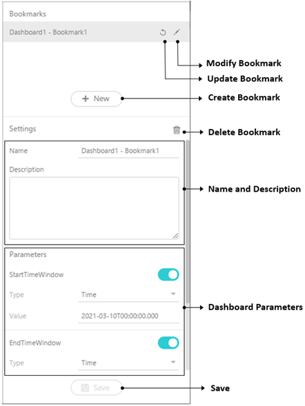 Enabled when a change is made in the bookmark settings. Click to save. |