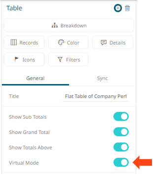 However, when the Virtual Mode option is turned on in the Table Settings, the table will be in a flat mode and the expand and collapse options will no longer be available.