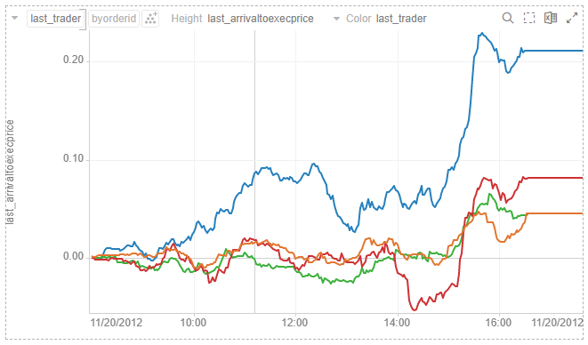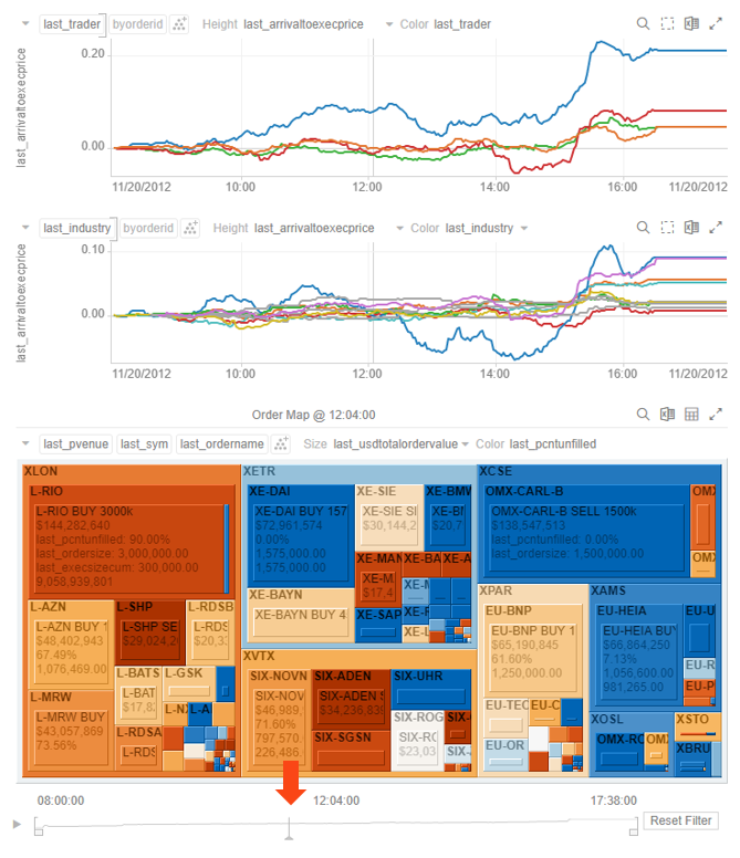 A time series visualization consists of a series of time slices, within a defined time window. The snapshot time identifies a particular slice, which can be highlighted further in separate visualizations.