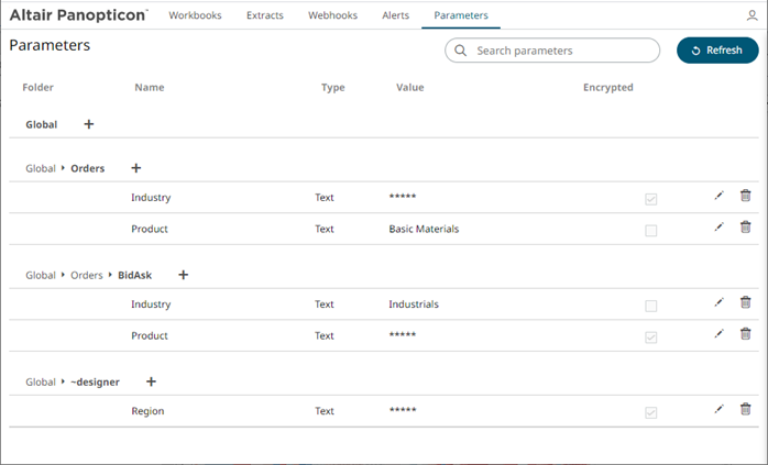 Users with an Administrator or Designer role can add, modify or delete global parameters that will pull and enter specific data into the different sets that are assigned to workbook folders, as well as user specific folders for Designers (e.g., Global > Orders, Global > Orders > BidAsk, Global > ~designer).