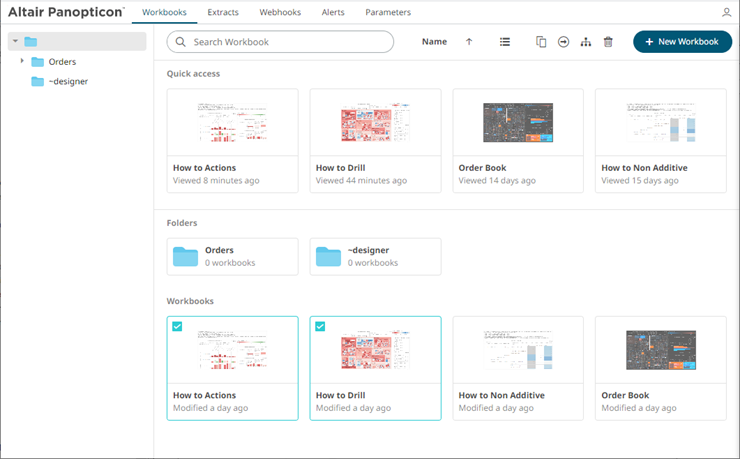 If workbooks with the same name are already in the selected folder, a copy of the workbooks are added.