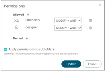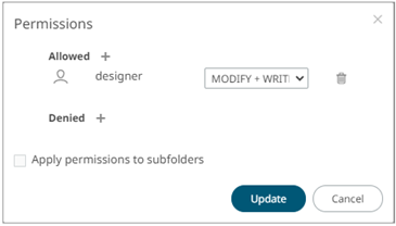 A user with a Designer role can grant permission for users or groups access to workbook folder or subfolder.