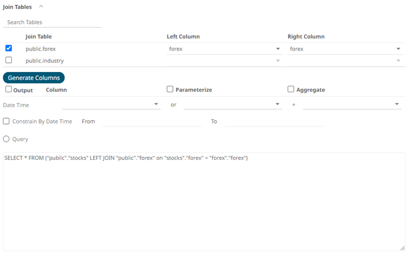 Also, expanding the Join Tables displays the list of tables that you can join.