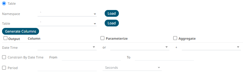8. When Table is selected, the section below is enabled: