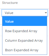 Used for more advanced features and are covered in the Row-Wise Array Expansion, Column-Wise Array Expansion, and Bson-Wise Array Expansion sections. Value is the default structure and will always display data regardless of actual structure. |