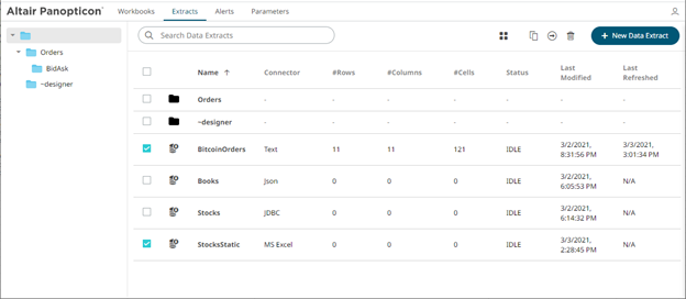1. Check the box of data extracts either: