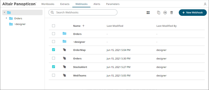 Users with a Designer role are allowed to copy webhooks to another folder or subfolder where they have permission.