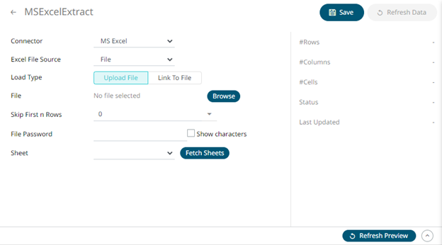 1. On the New Data Extract page, select MS Excel in the Connector drop-down list.