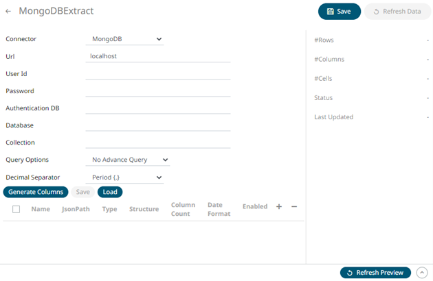 1. On the New Data Extract page, select MongoDB in the Connector drop-down list.