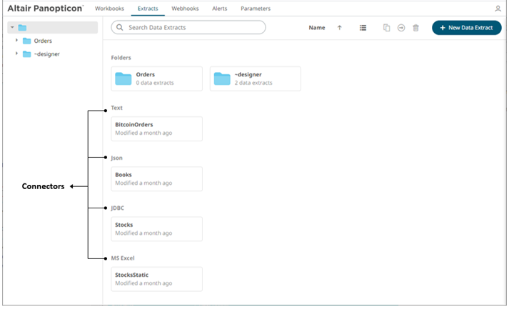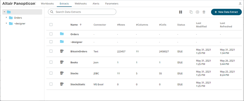 On either display view style, clicking on a data extract title or thumbnail displays the Extracts page.
