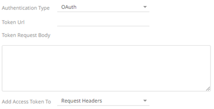 · Basic Basic authentication. · OAuth Then enter the following settings: o Token URL – The URL to retrieve the access token from. o Token Request Body – The request body used for access token requests. o Add Access Token To - The Access token retrieved from the Token URL can be added to headers, URL or request body, depending on how the endpoint needs the token. § Request Header - A header is automatically added to the REST API request. § Request URL - The URL needs to be manually parameterised with a {access_token} parameter, before calling the REST API, the parameter is replaced with the actual token. § Request Body - The Request Body needs to be manually parameterised with a {access_token} parameter, before calling the REST API, the parameter is replaced with the actual token. NOTE: Not available in the Stream Simulator connector. |