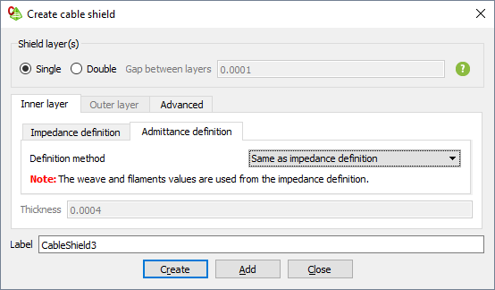 Figure 2. The Create cable shield dialog.