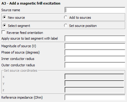 Figure 1. The A3 - Add a magnetic frill excitation dialog.