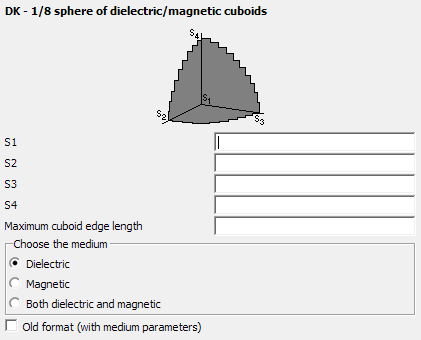 Figure 1. The DK - 1/8 sphere of dielectric/magnetic cuboids dialog.