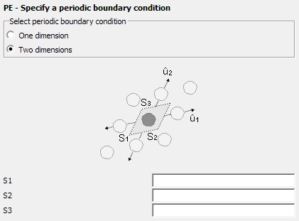 - Two dimensional periodicity is used when the unit cell is repeated to form a surface. The unit cell definition is displayed in the dialog above depicting the Two dimensions option.