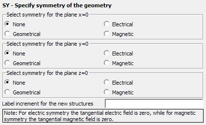 Figure 1. The SY - Specify symmetry of the geometry dialog.