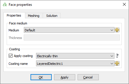 - In the Coating name field, from the drop-down list, select the layered dielectric to be used as the coating.