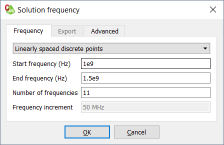 Figure 1. The Solution frequency dialog (Frequency