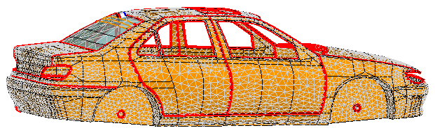 Figure 1. An example showing mesh connectivity. Faces with unbounded edges are shown in red.