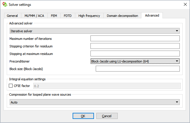 A number of preconditioners are available when using the multilevel fast multipole method (MLFMM) (for advanced users only).