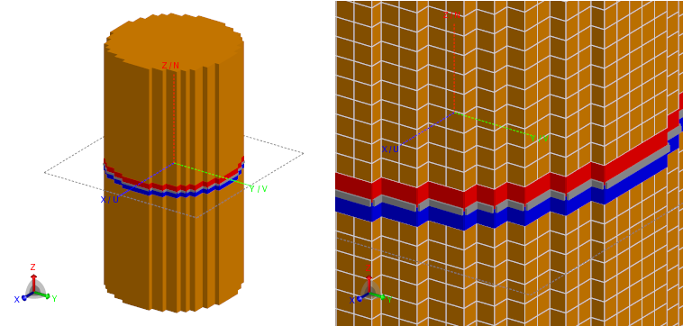 Figure 5. A valid edge port on a voxel mesh. Note the meshed port faces all lie in the same plane.
