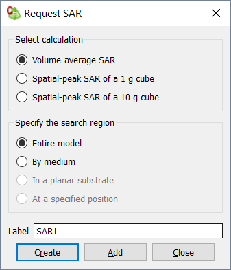 • To calculate the average absorption over a volume, select Volume-average SAR.