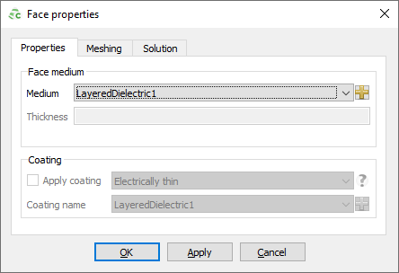 Under Face medium, in the Mediumdrop-down list, select the layered dielectric medium to be
