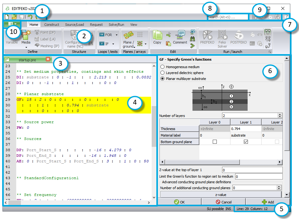EDITFEKO is used to construct advanced models (both the geometry and solution requirements) using a high-level scripting language