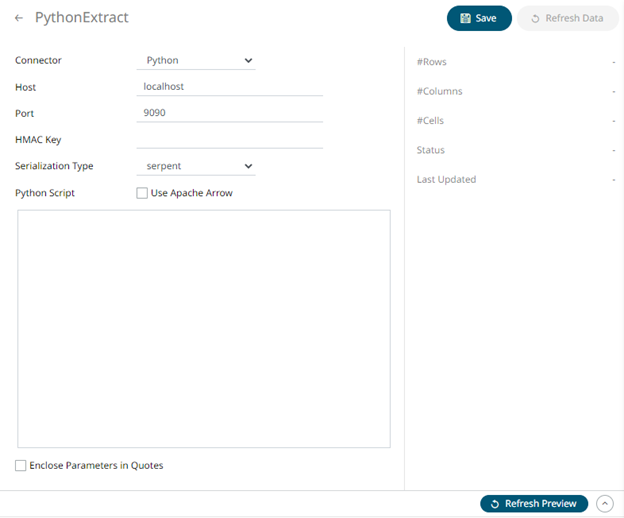 1. On the New Data Extract page, select Python in the Connector drop-down list.