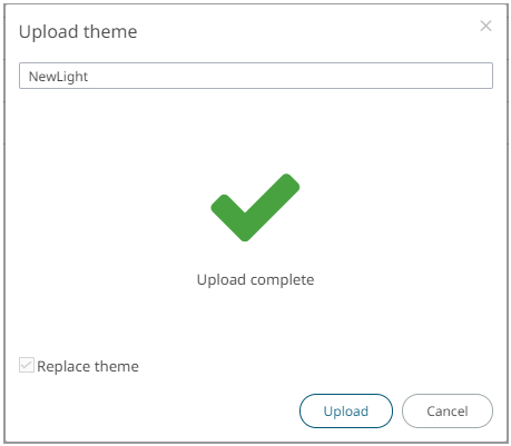 The name of the workbook theme is displayed on the uploaded workbook palette area and in the Name box.