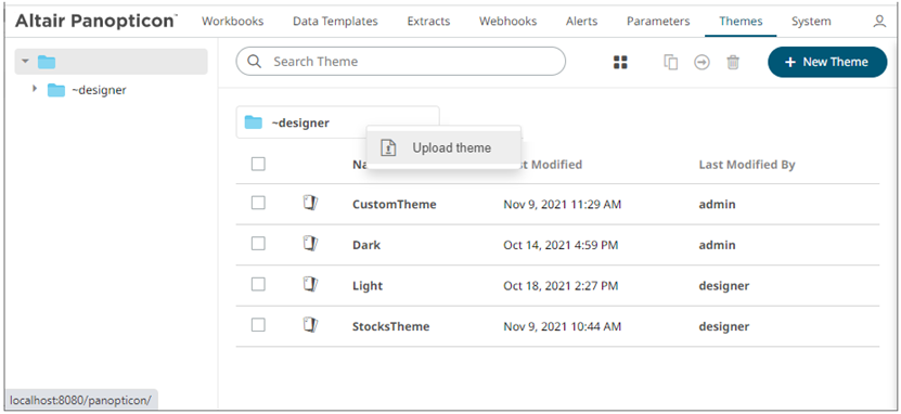 1.     Click on a folder of subfolder where the user has permission to upload a theme then select Upload Theme on the context menu.