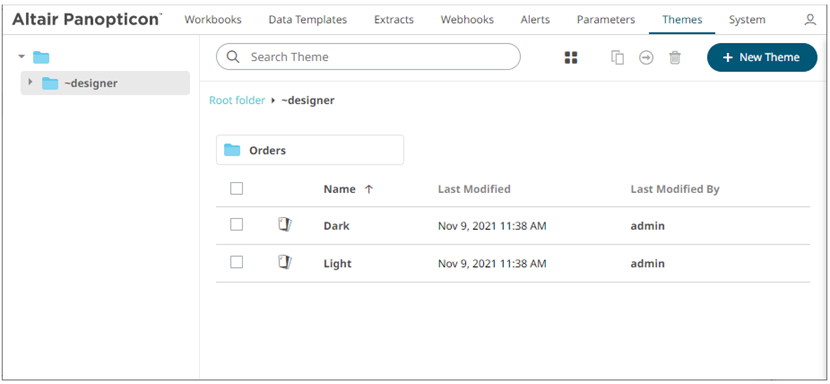 Users with a Designer role are allowed to copy themes to another folder or subfolder where they have permission.