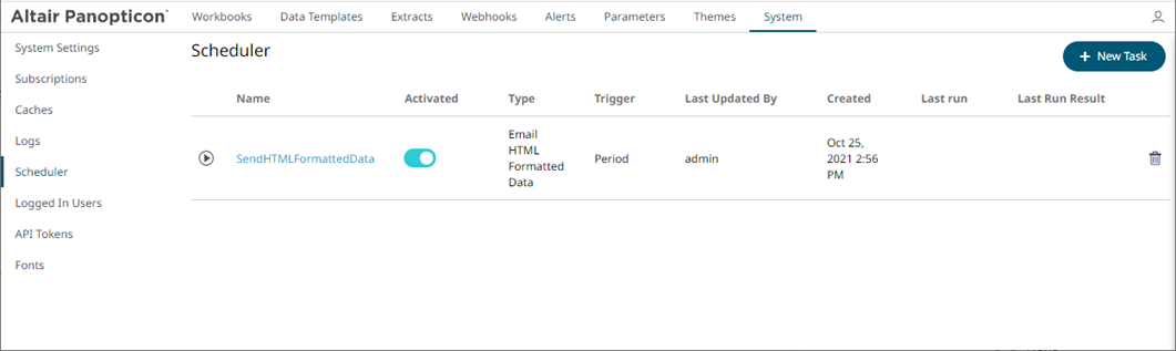 Panopticon Visualization Server provides the functionality to create tasks to generate and email HTML-formatted table exported from a selected workbook and dashboards.
