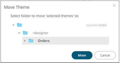 Users with a Designer role are allowed to move themes to another folder or subfolder where they have permission.
